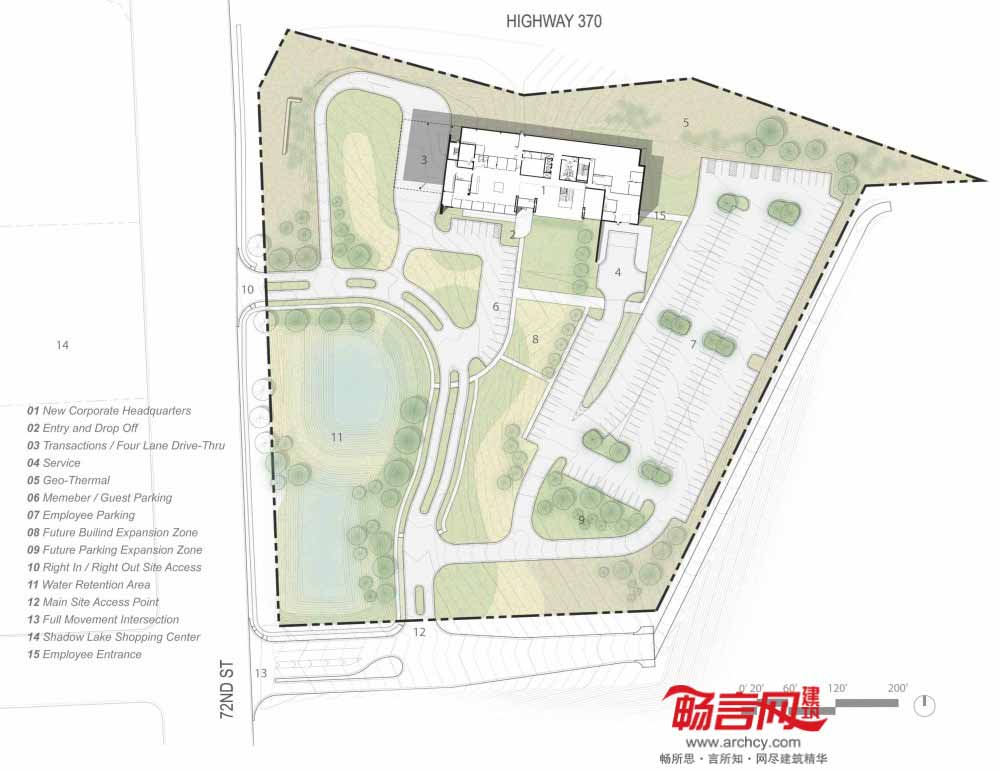 Leo A Daly——国际知名的建筑、规划、工程、室内设计及项目管理公司被SAC联邦信贷联盟选中,为其位于美国内布拉斯加州Papillion的新公司总部大楼提供设计及工程服务。设计方案反映了SAC紧密的文化、相互合作的工作氛围及社会责任感,总部大楼将建立在坚实的砖石基础上,表现了SAC的会员所有制基础。