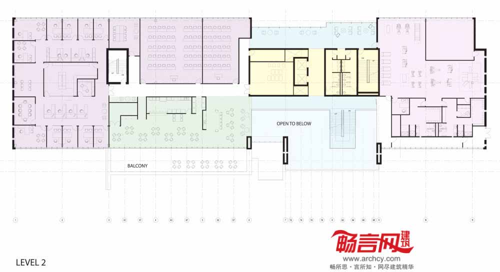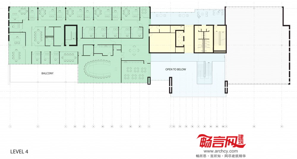 楼顶露台和绿色空间为员工提供了全角度观景机会。北立面的走廊提供了带有巨大窗户的办公空间,利于创新协作及灵活的团队合作。