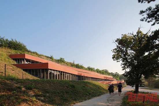 Radionica事务所设计了位于克罗地亚Vukovar的文化馆。项目旨在纪念该地区长久的制陶传统。建筑如同一条道路,游客可从街道平面来到顶部的Vucedol文化考古遗址,攀登其20米高差的路径。游客在博物馆中穿行,可获取所需的各种古代文化信息。展览区域包含若干可攀爬的平台,均依照地势高低而设。基本设计理念是使建筑同场地环境融合,因而大部分为地下设施,只有外立面向环境敞开。