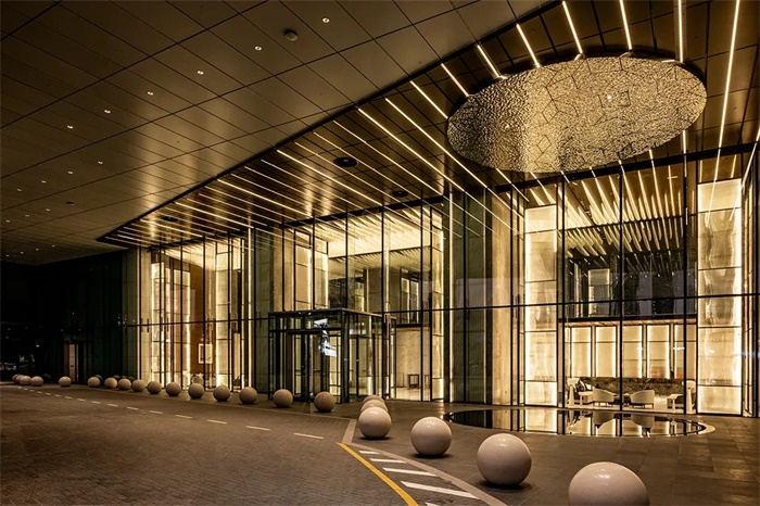 由于设计在玻璃幕墙外设置了玻璃鳍片,塔楼的外观可根据观察角度不同,呈现出不同的表情。玻璃鳍片上的白色圆点既增强了遮阳效果,又缓和了反光效果,增加了层次感。幕墙还采用了具有出色遮阳性能且高透明度的低辐射玻璃。悬臂的桁架结构与包裹着其六个面的玻璃幕墙相结合,增强了其外观的“漂浮”感。
