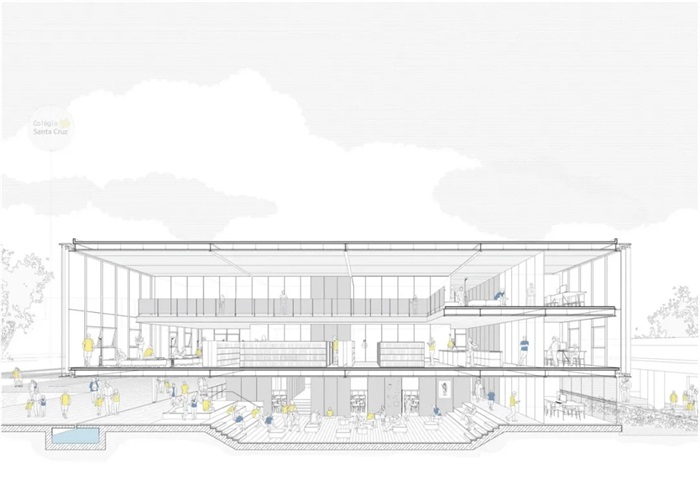 Santa Cruz学院是SãoPaulo地区重要的传统学校之一,新图书馆的竞赛在校园现代化和改造的过程中应运而生,以自由区域一体化为设计的目标。项目位于校园中心的特殊位置,原有的设计不满足地区的重要性,也缺少建筑对场地的回应。项目方案包括一个建筑综合体和开放的校园区域的综合景观。出于一种干预的设计策略,建筑将区别于环境,建筑同时可以是单独的鉴赏对象。