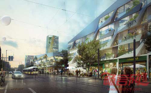 国际设计公司LAVA试图通过其”三广场“设计方案恢复柏林某地区的活力。混合用途的开发方案从场地组件着眼,构想了其重要特性,例如附近的奥林匹克训练场地、欧洲最大城市自然保护区。高楼反射出金色、银色和黄铜色的光泽,配合三栋锐利的城市街区建筑,创建出德国垂直居住新形态。