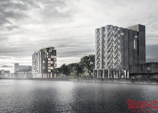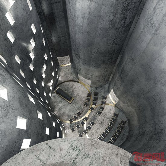 瑞典Lund大学学生完成了马尔默殡仪馆方案设计。项目基于一个废弃谷仓的改造,将其变成垂直公墓,名为“生死之屋”,是两位学生的硕士毕业设计。项目包含对两座混凝土谷仓的翻新和再利用。其中一座圆形建筑奖变成骨灰室,即针对死者,另一个用于住宅。