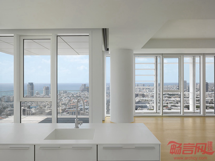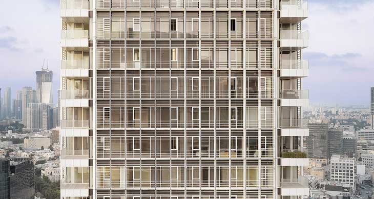 理查德·迈耶建筑事务所完成了特拉维夫罗斯柴尔德大楼设计。这是一座国际化高层住宅,也是该事务所在以色列的首个项目。建筑高154米,外立面设有双层结构,分别是玻璃和白色百叶窗,旨在营造通透和光明感。在建筑顶部设有宽阔的“城市窗户”,复式露台为住户提供欣赏地中海美景的空间。