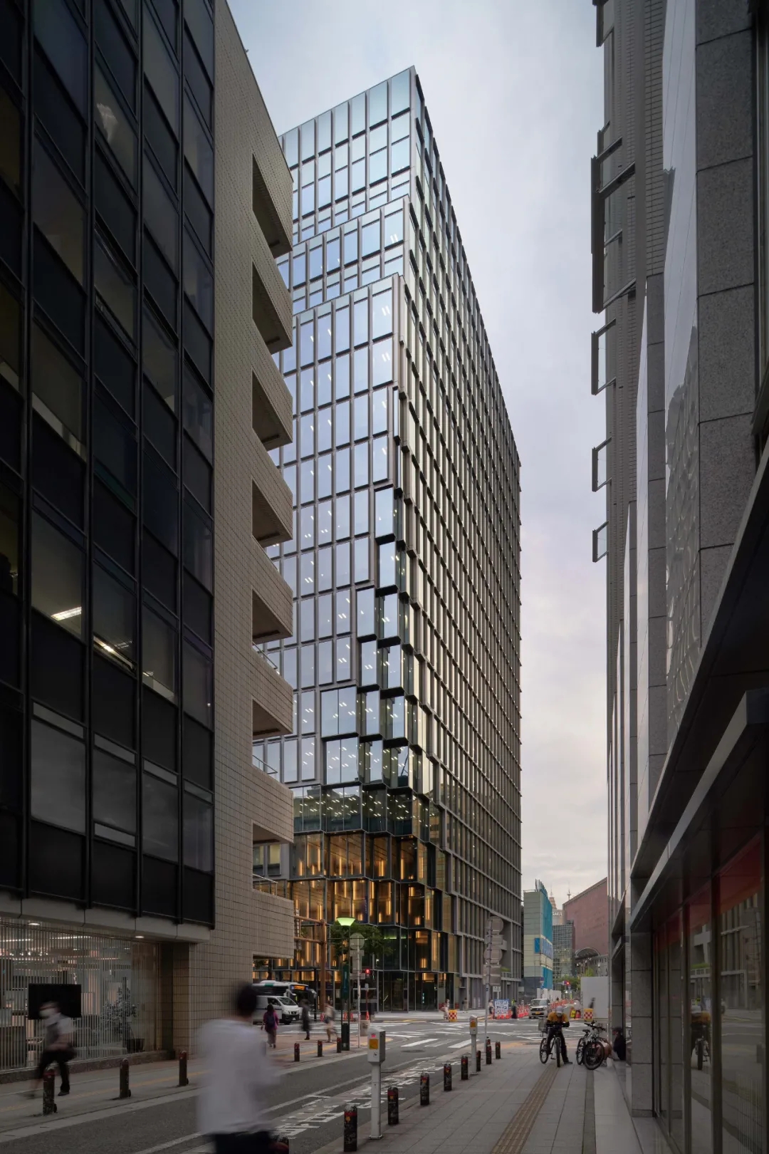 项目坐落于两条城市主轴线的交汇处,一条是两旁设有金融办公大楼的城市核心商业大道明治道(Meiji-dori),另一条是与城市厅广场相连并配有众多咖啡厅的有机人行通道稻叶町道(Inabacho-dori)。天神商务中心在地下与地铁站和购物大厅相连,大楼的主体功能被设定为工作空间,而它的建筑体块既不是低层建筑也不是塔楼建筑。