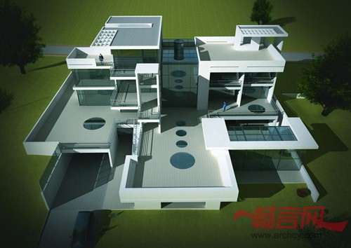 C住宅所规划的庭院面对一条绿色走廊,其中折射出建筑师对所居住的古城的印象,并且激发其他建筑师对周边环境产生新的构想。该项目中的第二座A住宅距离海岸仅200米,所以建筑师采用了大量的玻璃材料,以使居住者透过玻璃欣赏到里海的优美风景。