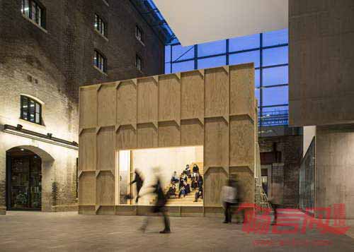 建筑的名称是Black Maria,出处是Thomas Edison的首个电影制作工作室。项目完全采用木制材料,设计灵感来自国王十字车站地区历史上曾经使用的工业木制脚手架以及当今该地区建筑场地使用的围篱。