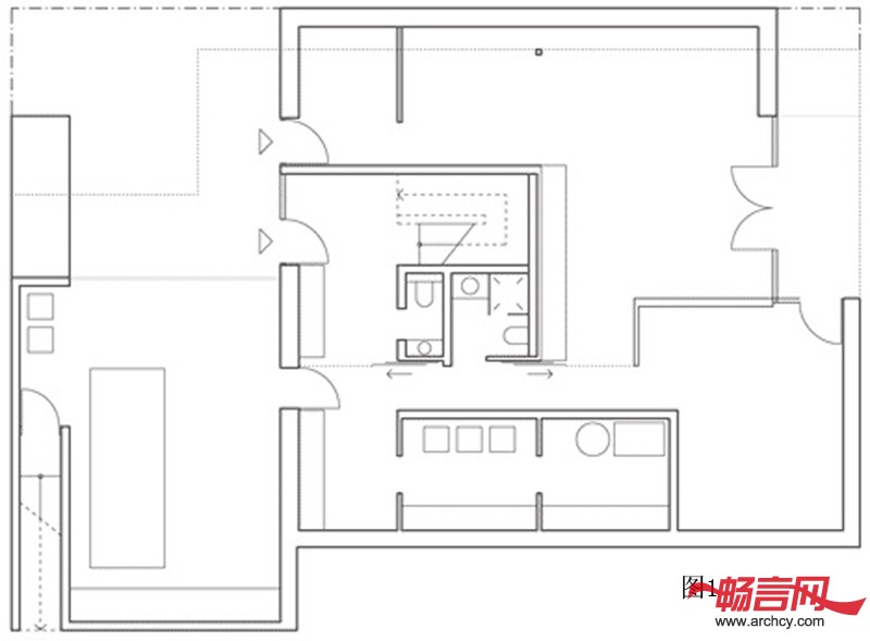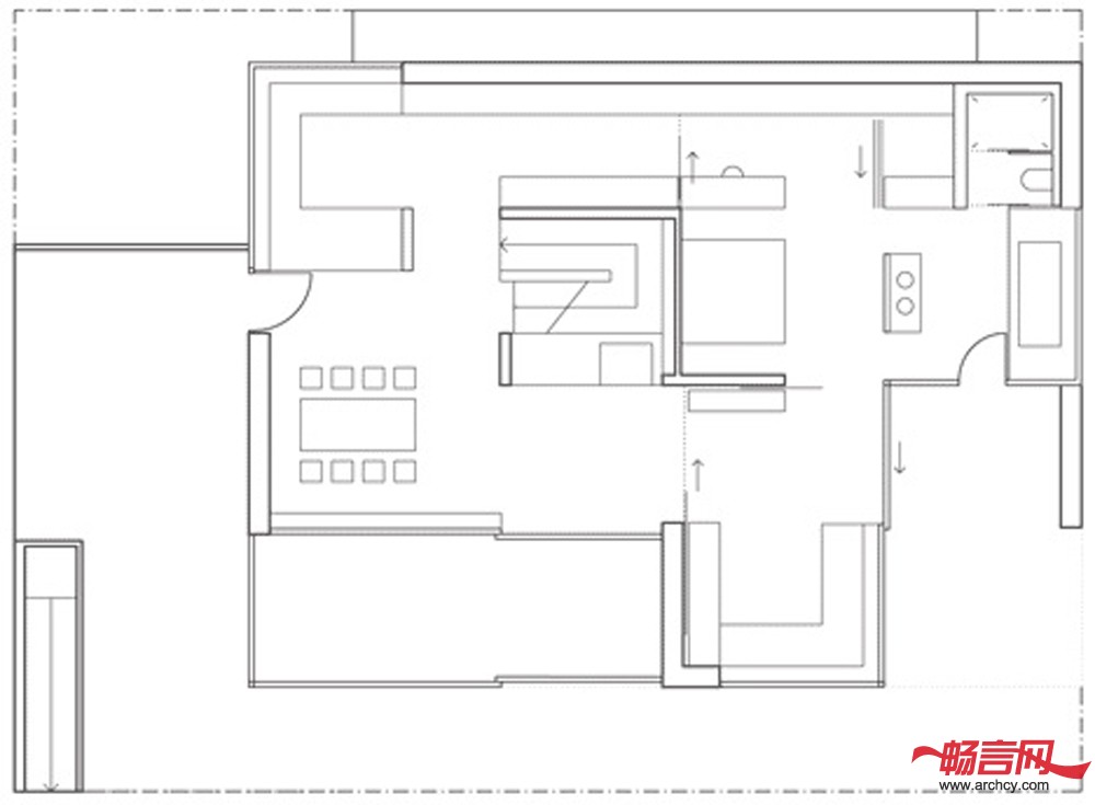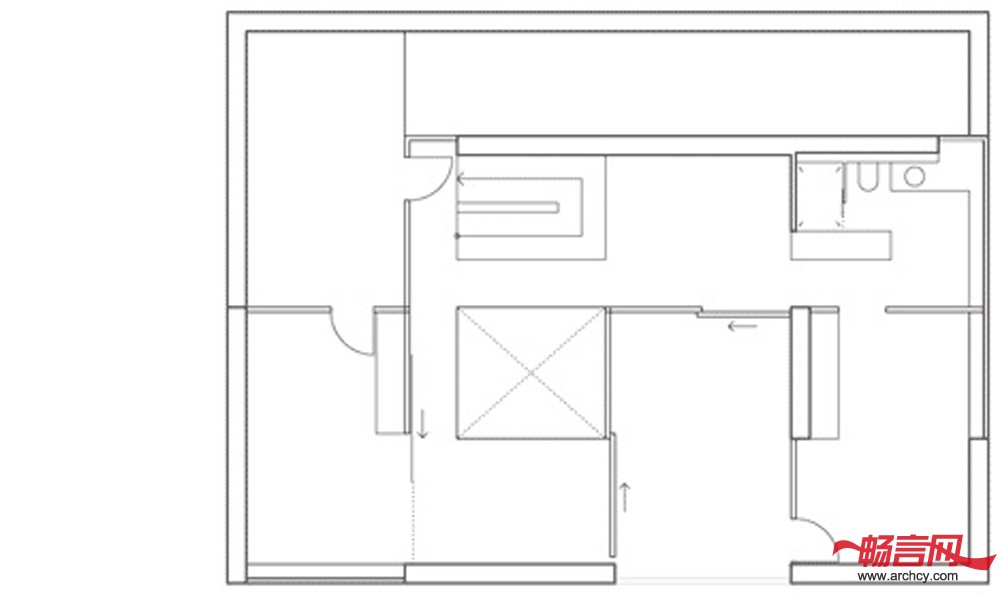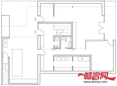 室内的墙壁和屋顶都喷上了白色的漆,这让屋里显得更加宽敞,而且让室内和室外相互作用,形成良好的效果。