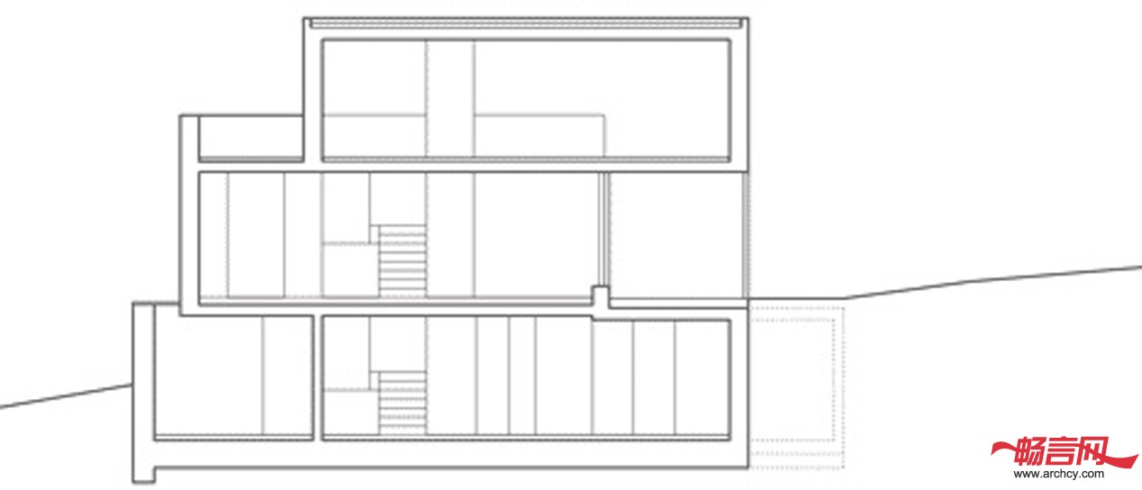住宅的一楼,也是入口所在楼层,是用钢筋混凝土做成的,它嵌入到朝北的山坡里。而二层则是用木瓦作为幕墙的木质结构。