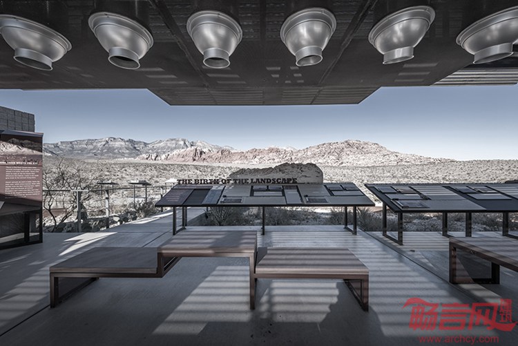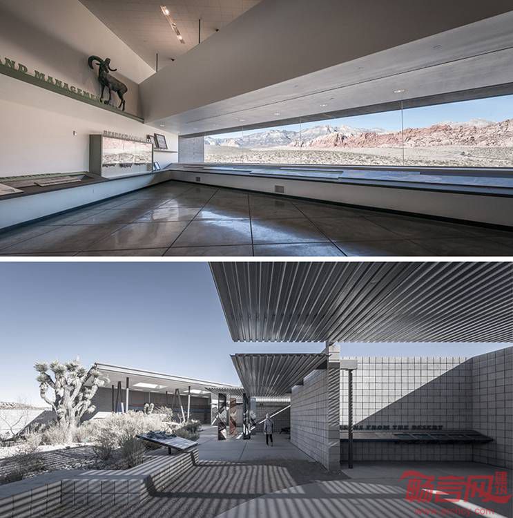 位于内华达州的红岩峡谷游客中心建于2010年,位于拉斯维加斯以西,其标志是超大的砂岩石基座。每年游客达到200万人,是登山者、自行车运动者、攀岩者等人群趋之若鹜的景点。该景点由美国土地管理局保护,并被认定为国家保护区。和其他游客中心不同,该项目突出了红岩峡谷自身特点,成为对自然的以假乱真的模仿。