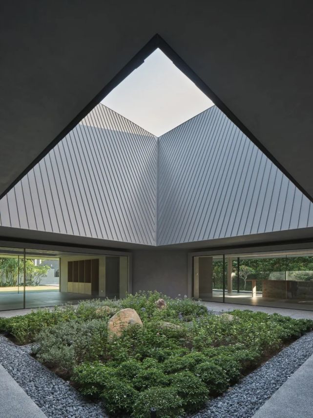 For this private residence commission, Neri&Hu are given a set of unique requests by the client: the new house constructed in place of the previous one should accommodate all three siblings, who as adults have outgrown their shared house; it should include a small memorial space in the form of a garden for their late mother; lastly, the new construction should retain the memory of the pitched-roof form, a defining feature of their childhood home.