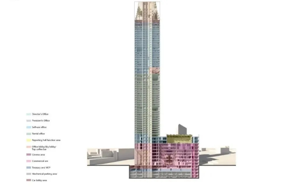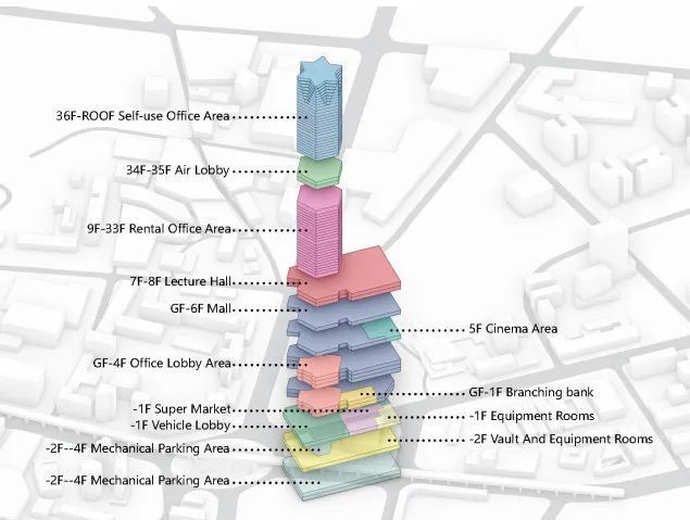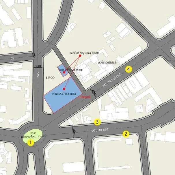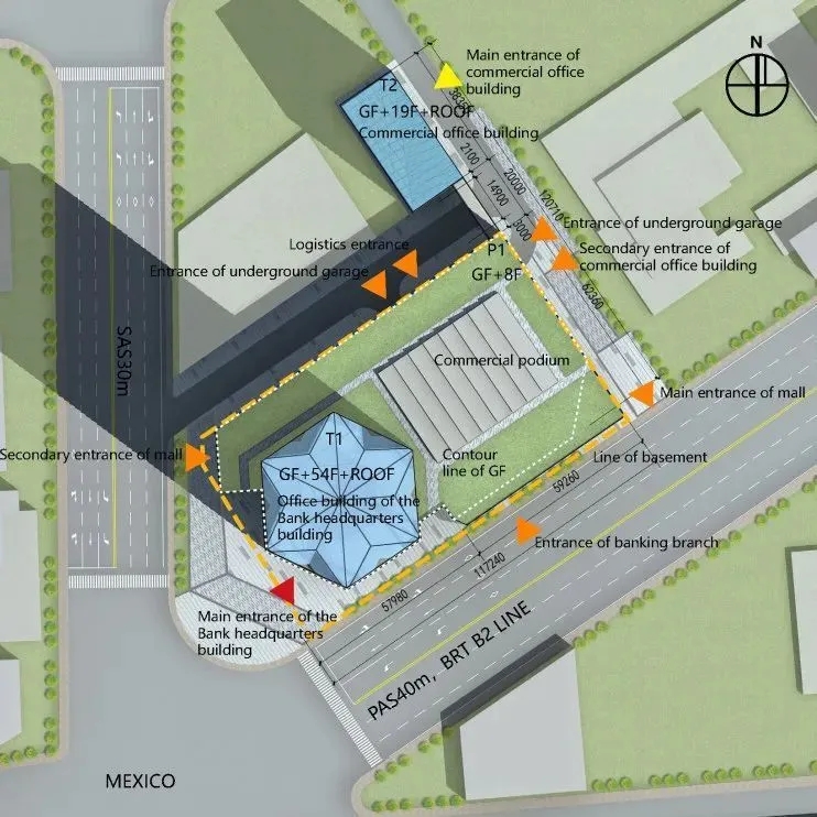 基地临近城市中心的墨西哥(Mexico)广场,位于SAS(斯·安倍比·阿拉加街道)与PAS(德杰·沃尔德·米凯尔街)街道交叉角。其中,A地块占地8716.6平方米,B地块占地943.26平方米。场地周围高楼林立,包括United银行总部、Zemen银行总部和Nib银行总部等。项目总建筑面积17万平方米,其中地上建筑面积14.25万平方米,建筑高度230米,是集办公、商业功能于一体的复合型智慧办公示范项目。