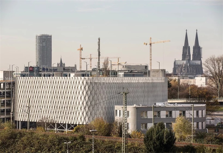Wulf建筑事务所为德国科隆博览会中心设计了P22A停车场。项目坐落于Zoobruecke桥边,5层停车场提供3260个停车位。项目包含轻质通透的外壳,统一设计的外立面包裹了S型弧面结构,如同巨大的有机表面,给人呼吸感。Wulf建筑事务所受到博览会中心和科隆市政府的委托,营造了创新、具有象征意义的停车场外立面,采用3000块激光切割的金属板,诗意的表皮赋予建筑可塑性。金属板之间的缝隙如同“鱼鳃”,让空气在停车场中自然流通,并提供了充足的自然光线。