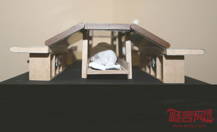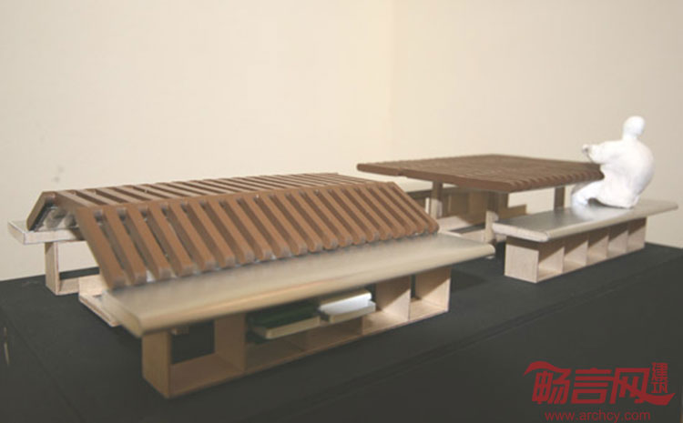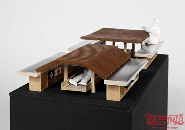 澳洲Sean Godsell建筑事务所成为伦敦V&A博物馆建筑师小空间展览的十九家设计公司之一。其方案名为野餐桌住宅,这个白天时间的餐桌在夜里会变成流浪汉的住所。餐桌可以放下,由下方的长椅支撑,成为屋面。不锈钢编织床垫和保护框由桌腿支撑。
