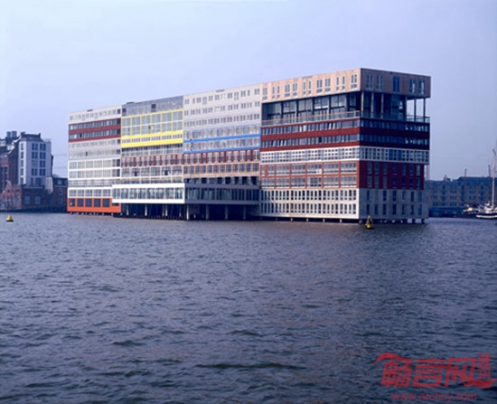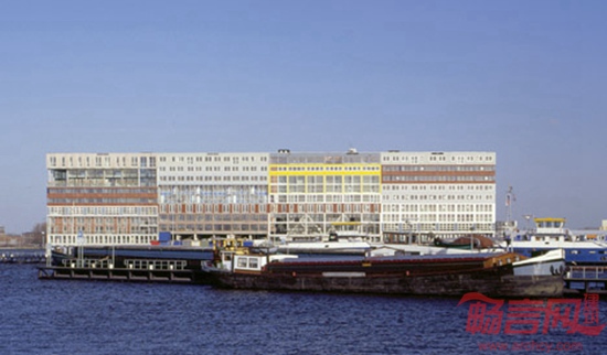 阿姆斯特丹Silodam住宅楼由荷兰MVRDV建筑事务所设计。坐落于城市的工业区内,包含一座大坝和谷仓建筑,这座10层建筑共容纳157套住宅,另外涵盖办公、商业单元和公共区域。MVRDV的设计出发点是希望创造多种类型的住宅,将老年住户、公司职员、艺术家和低收入家庭聚集在一起。设计师表示,业主要求我们设计多种不同类型的住宅,折射了不同的财政状况,我认为项目可以称作是阿姆斯特丹的城市横截面。