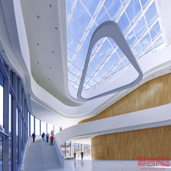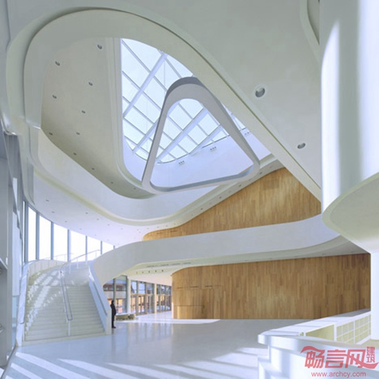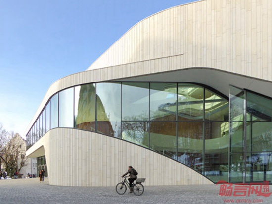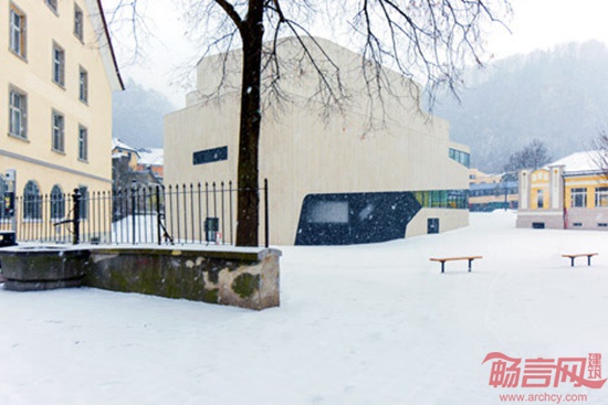 柏林Hascher Jehle建筑事务所设计了位于奥地利Feldkirch的Montforthaus文化中心。项目所在的是一座中世纪城市,目的旨在为会议、贸易展会、音乐会和剧场演出提供空间。设计围绕多种用途展开,面向周边居民,除了上述功能,还容纳当地游客问询中心,全天对公众开放。设计师采用圆润的建筑造型,使建筑从各个角度拥有同样的可达性。