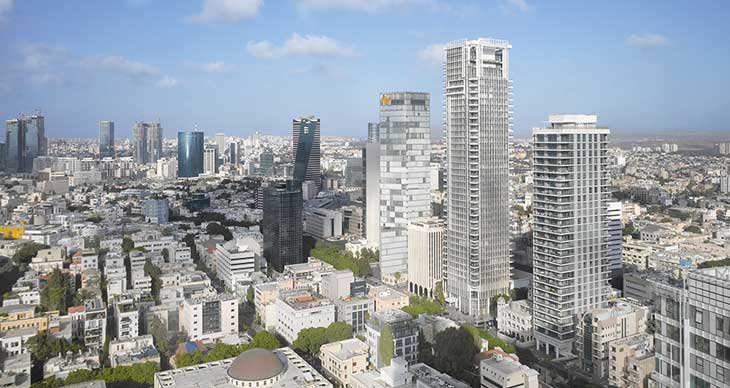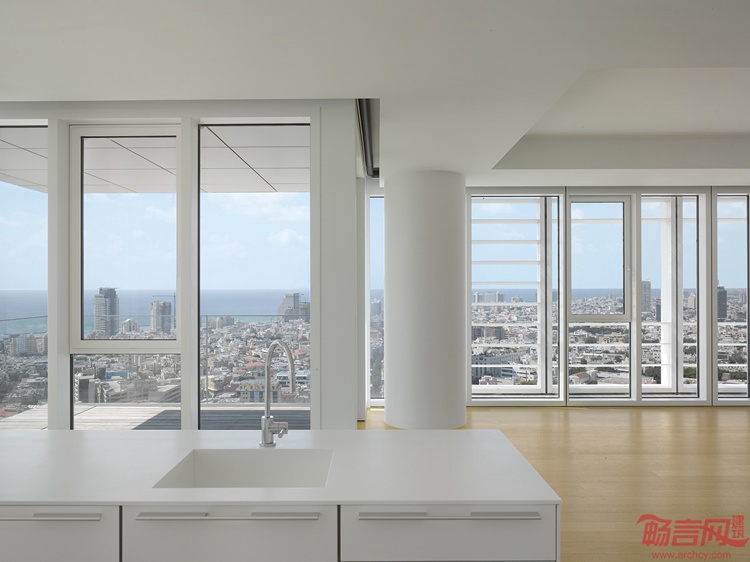 这一位于罗斯柴尔德大道的住宅楼是理查德·迈耶在以色列的首个项目,也是其在美国之外的首座高层住宅建筑。罗斯柴尔德大道是特拉维夫白城的主干道,位于一座规划建设的新城中,这里是城市最为昂贵的街道之一。设计师以现代白色建筑闻名,以城市著名的包豪斯运动的设计原则为灵感。42层高层共有147套公寓,此奢华公寓最大卖点是摄人心魄的城市视野和海景。附近街区拥有诸多德裔犹太建筑师于30到50年代设计的包豪斯风格建筑。项目高154米,多层次的外立面旨在传达通透明亮的印象。鉴于建筑尺寸,这一目标能否实现似乎存疑。