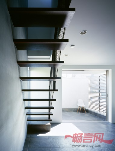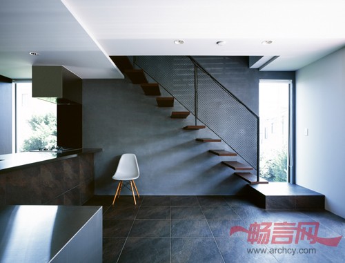 在这片高楼林立的地区,这座房子个性的外观给人留下了深刻印象。同时,房间内部完全采用开放式设计,充满了自然光线。遍布四周的窗户设置与其说是考虑了物理循环、结构和舒适性,不如说是满足了房屋外墙的美学性。事实上,无论居住者从哪个入口进入这所房子,他都可以随着自然光线的引导进入房间。所有的室内门都是与墙等高的推拉门,当它们被打开的时候,室内所有的空间和热量将会被融合成一体。