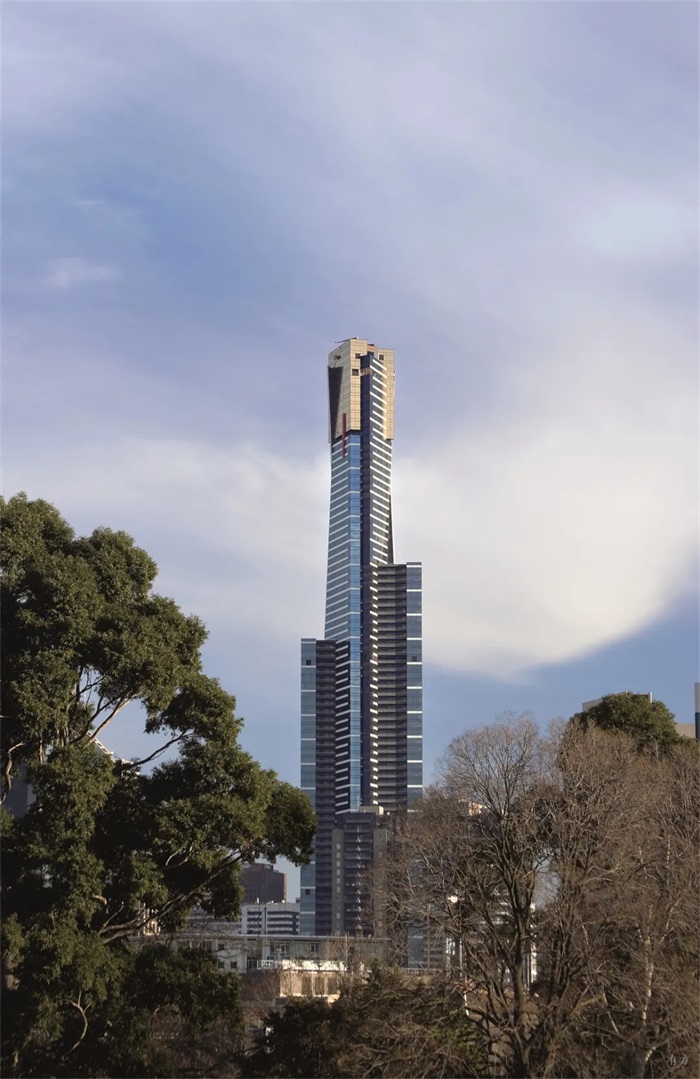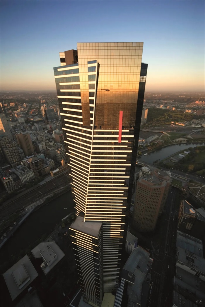 尤里卡大厦坐落于澳大利亚墨尔本,毗邻CBD,共九十层,总高度近300米,已于2006年竣工。直到2020年事务所的另一超高层建筑Australia 108建成之前,尤里卡大厦一直是墨尔本最高的建筑,可谓是重新定义了墨尔本的天际线。