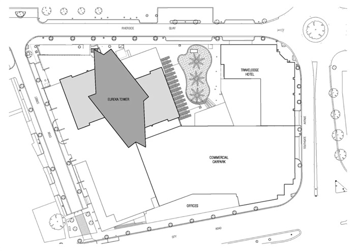 大厦位于雅拉河(Yarra River)对面,占据城市艺术和文化区中的一块完整街区。其在第五层设有酒店、办公空间、精品公寓、商业停车场、酒店设施和零售租赁等,南北拱廊与相邻的花园广场则将雅拉河和墨尔本CBD区相连。建筑结构内还融入了艺术元素,例如具有纪念性的理查德·斯金格雕塑和大胆制作的空间营造图形。