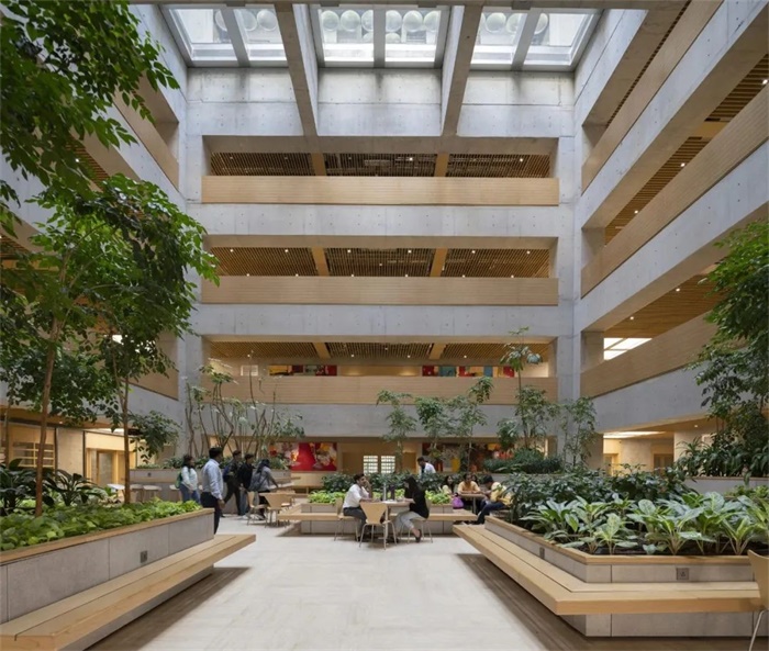 福斯特事务所(Foster + Partners)为印度DY帕蒂尔大学设计的卓越中心位于新孟买,现已投入使用。这座十层楼高的建筑,旨在支持学校的教学方法和理念,同时为该校3000名学生提供高质量的学习和生活空间。该项目还包括一个欣欣向荣的两英亩空中花园,其中种植了本地植物,容纳了富有生机的池塘,以及设置了休闲区域。