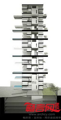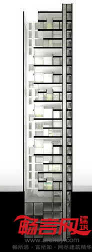 设计师希望摆脱传统的高楼设计观念,避免了奖若干完全一致的公寓简单的叠加,创造出三种适应不同需求的型式——各种型式都具有独特个性,将缺乏户外空间的特性作为设计的核心。
