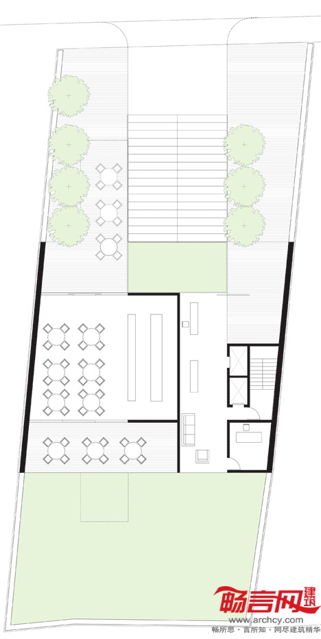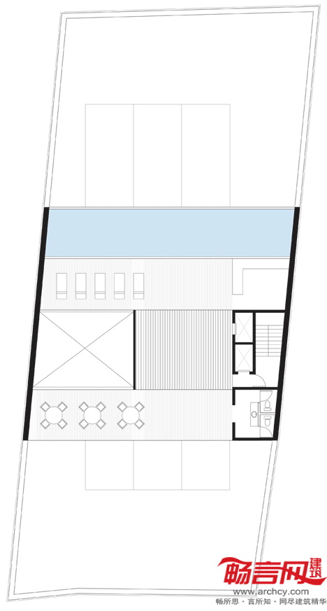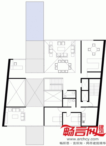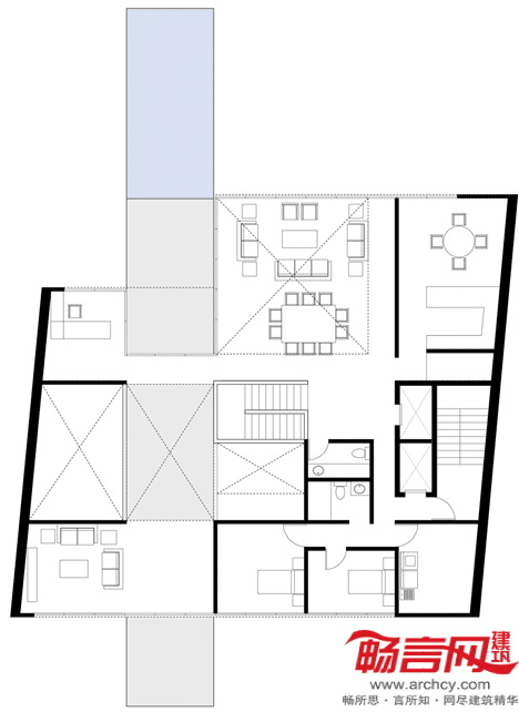 设计方案成功地将室外空间同室内生活融合起来,同时造就了公共区域和私人区域之间的新型关系。