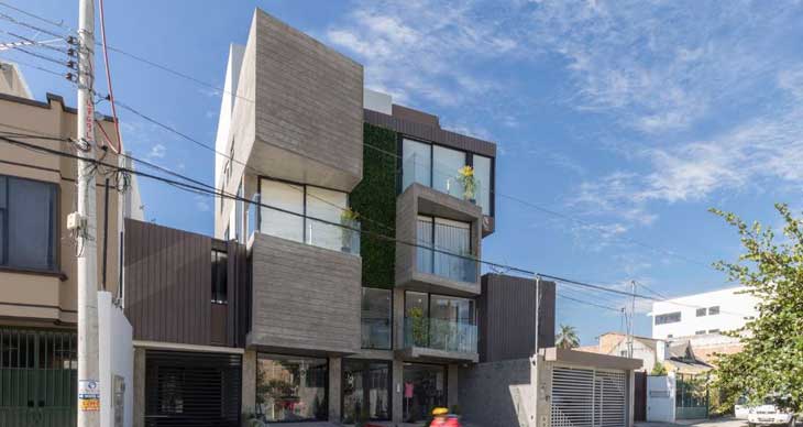 项目位于厄瓜多尔Cuenca,面积1774平米,于2017年完工。项目面临着巨大挑战,处于高附加值的场地中,同时也毗邻一块废弃的建筑场地和Isabela天主大道的一个服务站。项目将住宅和商业以实用性为原则有机结合,营造了介于30到90平米,一室到三室的住宅,对空间最大程度利用,增加了住宅数量,减少了占地面积,提升了入口的便利性。