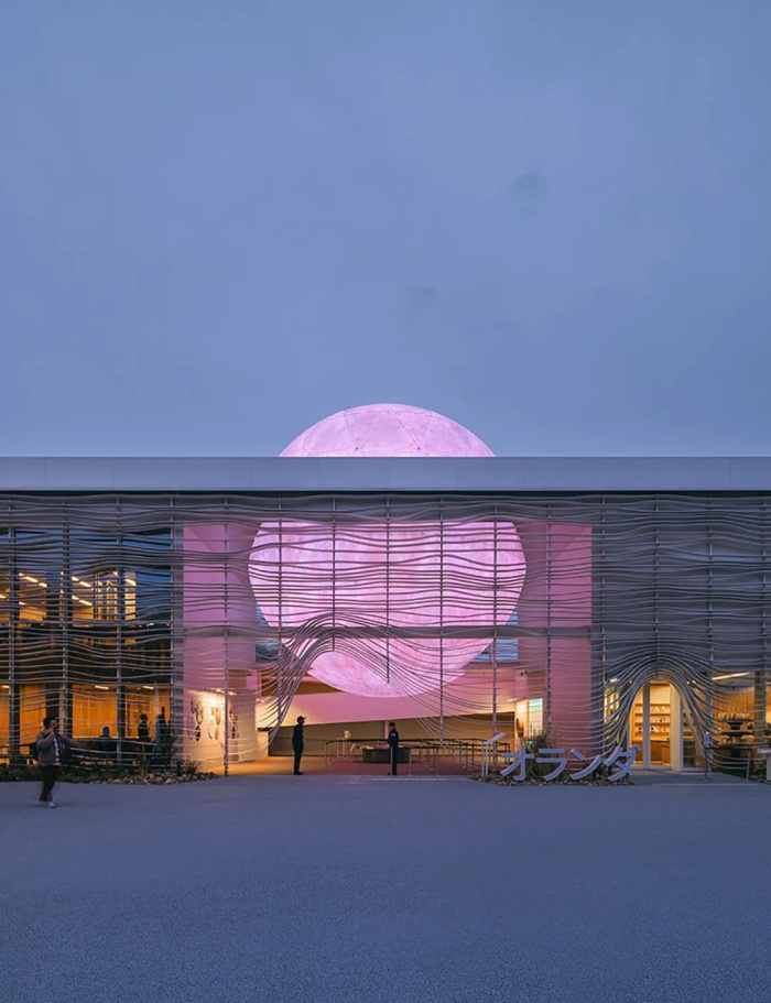 荷兰馆以“地球上的访客”为核心理念,呈现了面向未来的哲学:将能源、循环性以及人类对地球的责任置于展馆叙事的中心。地球是一个封闭系统,不能凭空增加任何新物质,一切不可再生的资源都是有限的。与55年前1970年大阪世博会相比,我们如今面临两大关键挑战:摆脱对化石能源的依赖,以及应对材料浪费问题。对此,荷兰馆提出了两项根本性应对策略——不是优化当前系统,而是彻底变革它:一种循环的材料利用方式,以及使用取之不尽、零排放的能源。