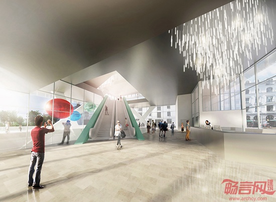 Daniel Mayer完成了哥本哈根2.0图书馆方案设计。该项目是响应AWR设计竞赛而提出的。概念围绕将现代科技融入图书馆背景的主题,将图纸到数字媒体的过渡更加顺畅。该项目旨在成为一个促进交流的枢纽,通过开放式的平台布局,增加人与人的沟通。项目包含具体的中庭和围绕其的弹性空间,后者成为人们进入建筑的媒介。