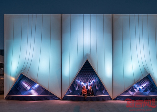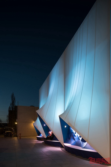 DUS工作室在荷兰移动欧洲建筑项目中结合3D打印生物塑料和弹性织物结构,营造出具有雕塑感的外立面。这座建筑将用于欧盟未来半年内召开会议。设计公司此前两年内一直致力于研究建设世界首个3D打印运河住宅,在此次项目中运用了先进的资源,创造了别具特色的外立面。临时结构在未来半年内将用于召开欧盟主席国会议,随后的下半年会议将移至斯洛伐克举行。