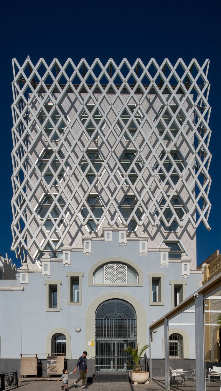 项目坐落于非洲海岸与摩洛哥接壤的梅利利亚,是西班牙的一个自治城市。在2003年关闭之前,梅利利亚历史市场已经运行了约90年。Angel Verdasco事务所使用铝梁格栅覆盖瓷砖,在梅利利亚的废弃市场上建立了一个教育中心。早在2008年,马德里Angel Verdasco事务所赢得了设计竞赛,被委托对基地进行活化设计。任务书要求将现有的三个教育中心(一所音乐学院、一所语言学校和一个成人教育中心)迁移到被废弃基地。