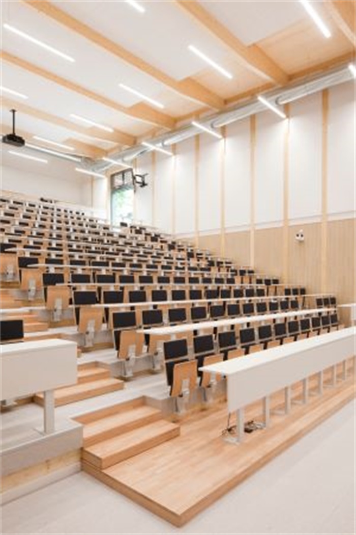 亚戈拉大楼将成为一个标志性的场所,这座3层建筑的内部功能包括:6个拥有悬挂的可移动墙体的模块化教室,两个可分别容纳250人的拥有木质阶梯的大型阶梯教室,多个共享办公空间,一个可容纳90人的用于继续教育的阶梯教室,一个用于动物模型教学的多功能教室,全校的行政服务办公区,以及地下室的后勤和仓储空间。