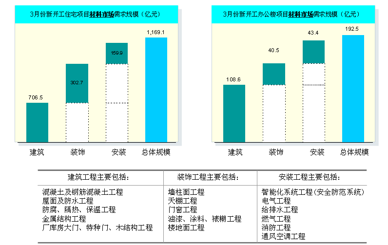 > 住宅和办公楼项目下游材料市场规模测算