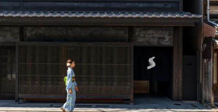 Shinmonzen是一家位于京都祗园的小型酒店,单从街道望去,建筑外立面深色的木格栅到屋面层叠的瓦片,与传统京都联排的建筑毫无二致。然而,当人们走过悬挂“s”字样门帘的入口,便会看到由混凝土和木板格栅围合的走廊,与其外表大径相庭的现代风格扑面而来。