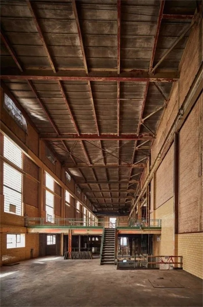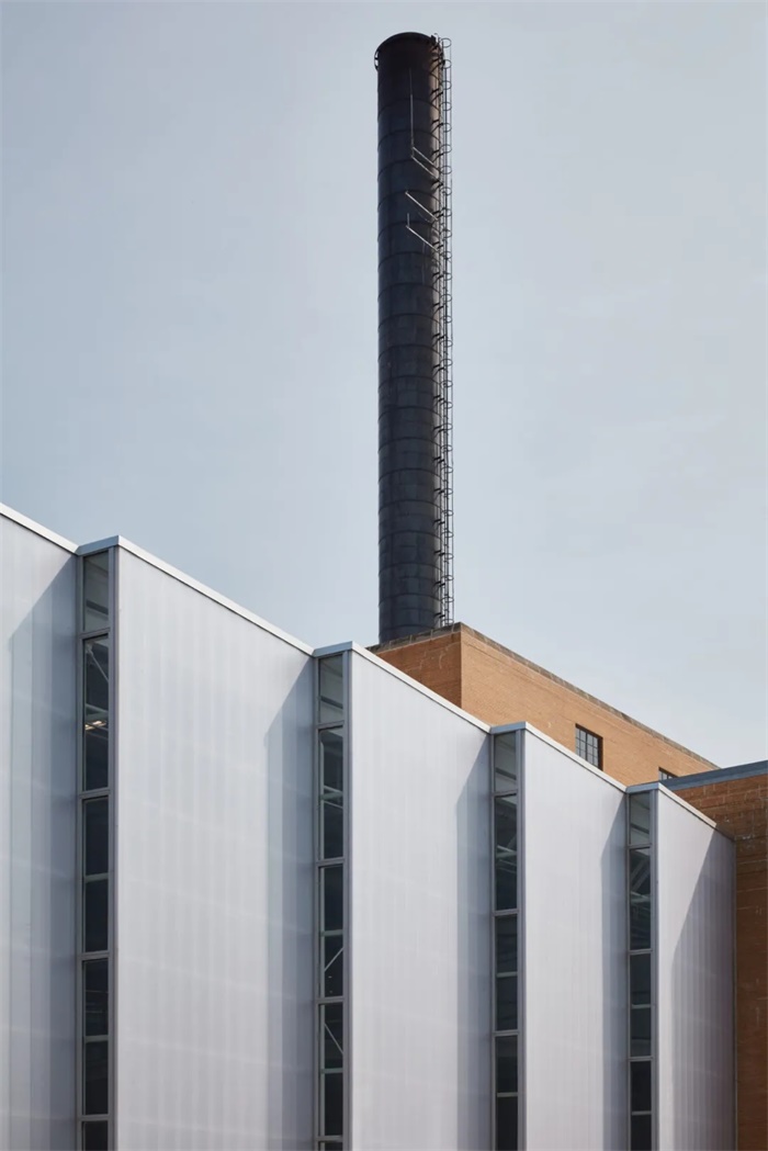 改造前的电厂创立于1913年,上世纪经历了两次扩建,2010年该建筑正式“退役”。Gang建筑工作室在设计时,保留了并更新了原有的红砖和混凝土结构,增加了一个1579㎡的新体量,该体量由半透明的聚碳酸酯墙和钢框架构成。立面嵌板彼此成角度排列,为中间的窗户创造了细长的狭长缝隙。