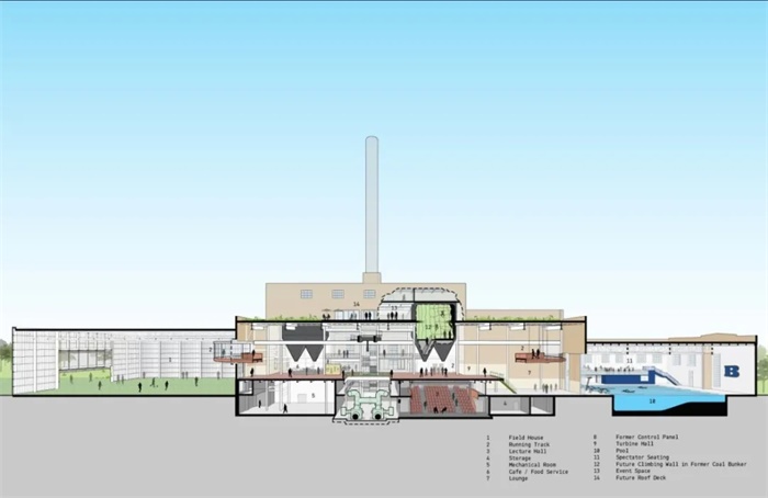 为了提高学生的体验,帮助振兴当地的沿河区域,美国贝洛伊特学院与Gang建筑工作室合作,将一座百年燃煤发电厂改造成了一个以娱乐和健康为主的学生活动中心。