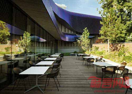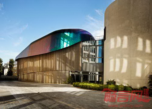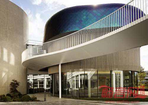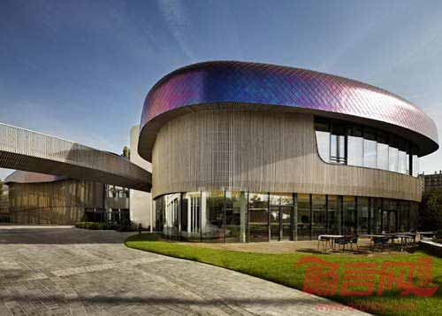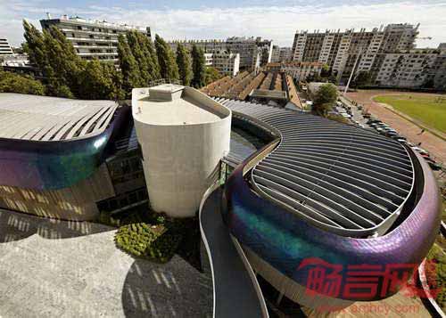 法国Agence Jouin Manku建筑事务所设计了巴黎郊外办公园区中的一座办公楼。建筑拥有弧形亮面顶部,宛如盘桓着一对闪耀着龙鳞的游龙。事务所受托为法国最为古老的物业公司Socieete Fonciere Lyonnaise公司建造翼形办公空间。该公司的办公地点是塞纳河岸一座1920年代厂房改造建筑。项目名为In/Out,新建结构包含围绕一座管状混凝土楼的弧形三层建筑。