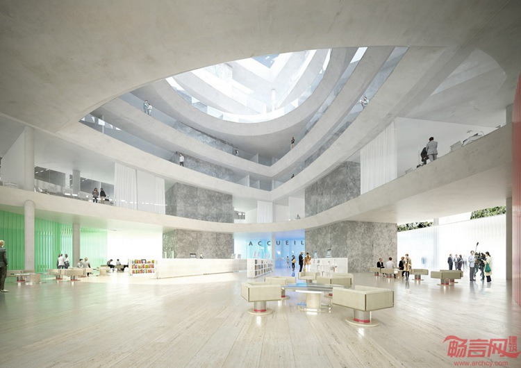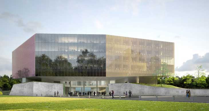 荷兰OMA事务所公布了法国里尔一座六边形法庭设计方案。外立面完全采用彩色玻璃幕墙。项目受到当地司法部门委托,将成为里尔高院办公地。法院位于城市西部,临近一座建于1667年的古老城堡,后者有着五角星式的布局。设计师决定模仿这一设计,希望能突出城市历史和现在之间的众多不同因素。