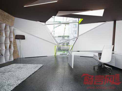 建筑采用了模块式活动地板系统,方便将来的重新设计和需要变更,墙边使用了多边形聚碳酸脂板,与周边方正的建筑形成了对照。建筑的大扇窗户为各楼层提供了充足的光照和良好视野,而遮蔽立面形成了平整幕墙。该项目设计成功地展示了如何改造城市不易利用的空间,在不对已有建筑造成影响的前提下,创建动感且具有适应力的新建筑。