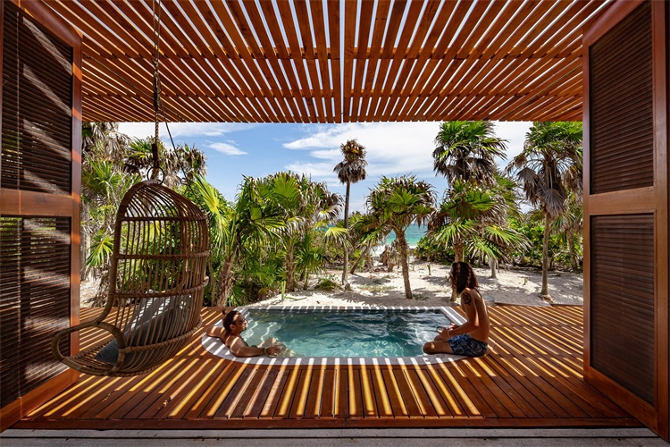 保护区距离Tulum约一小时车程,分为三个区域,分别有不同的活动限制。Productora工作室将住宅设计成L形,位于过渡区的海滨地段,以生态旅游度假住宅开发。