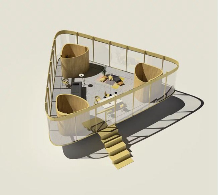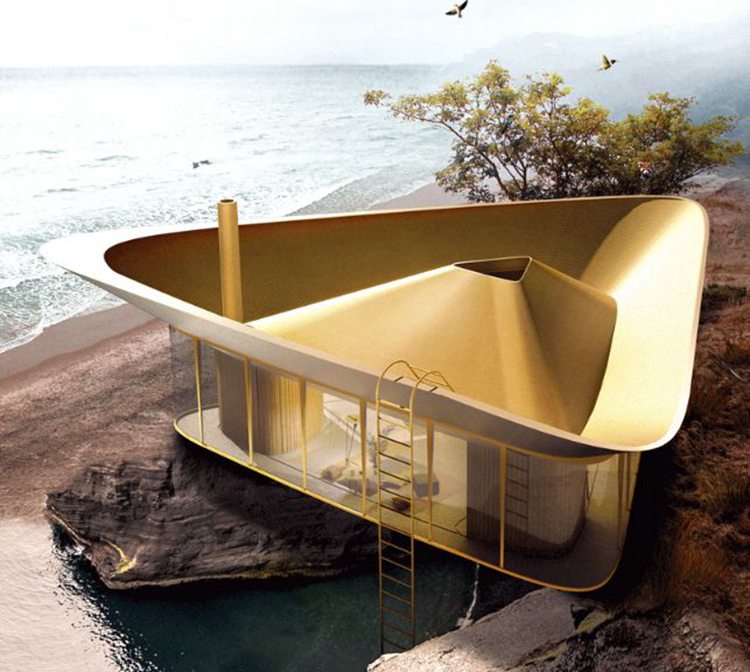 项目构想是在热带环境中塑造海景房,Anti Reality工作室完成了这个避暑别墅的设计。项目设有全景窗和屋顶泳池。坐落在海边的岩石上,同大海几乎零距离,一层建筑面积为85平米。项目地块是一个三角形,设计包含两大基本空间,起居室和游泳池。内部带有可欣赏海滩全景的外走廊,另外还有起居室和餐厅等多功能空间。