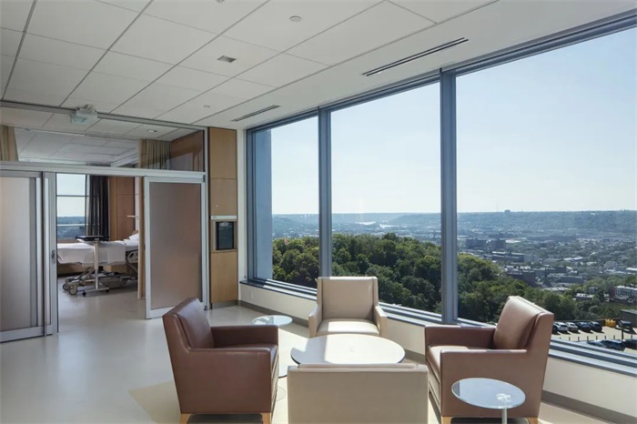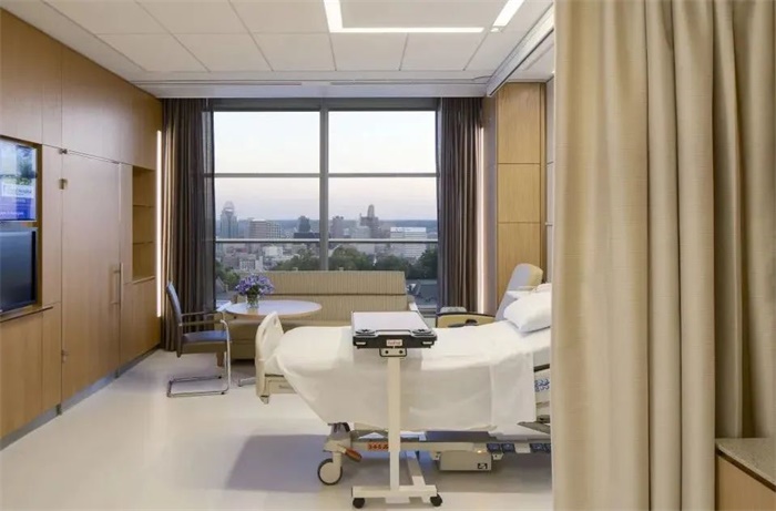 共 8 层楼的建筑包含 90 间病房和 12 个手术间。从高楼层的病房中可饱览辛辛那提市中心及周边区域的城市美景和自然风光,大楼的低楼层部分是矫形外科、脊柱和运动医学设施,并与医院现有的外科手术和成像区域相连接。