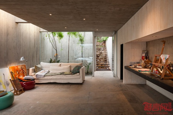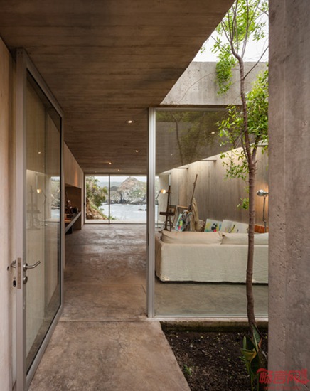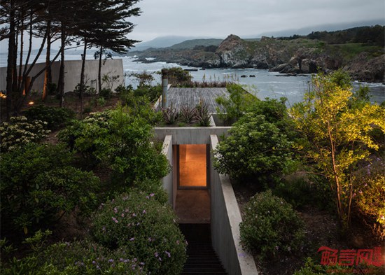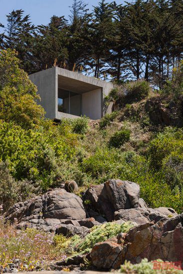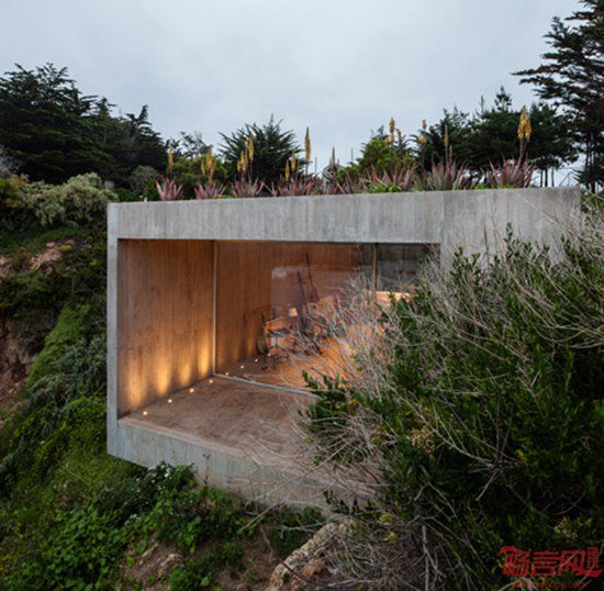 Felipe Assadi建筑事务所设计了位于智利海滨的抽象画家工作室。这座建筑一半隐藏在悬崖花园住宅之下。项目坐落于圣地亚哥附近的Los Vilos海岸,包含画家的工作室和住宅。植被和屋面的甲板让半地下的建筑几乎从陆地方向无法被注意到,但其玻璃露台露出地面,朝向悬崖外的南太平洋。
