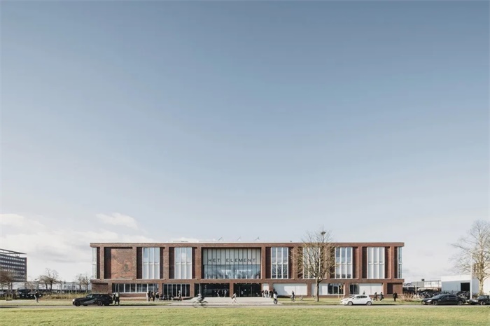Het Element 的新校舍包括两所预备职业中学、三个体育馆、一个柔道馆和一个语言中心。通过选择一个较为紧凑的体量,设计创造了宽敞的室外绿色空间,较短的步行距离和一个充满活力的中心,所有不同的体块都与之相连。