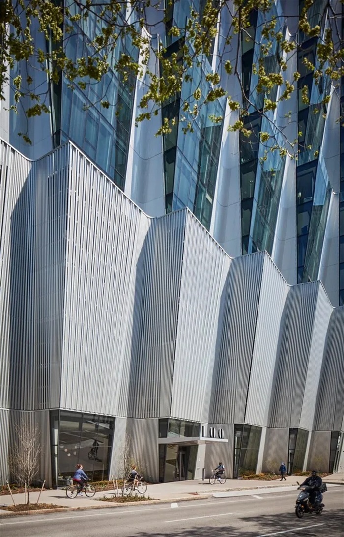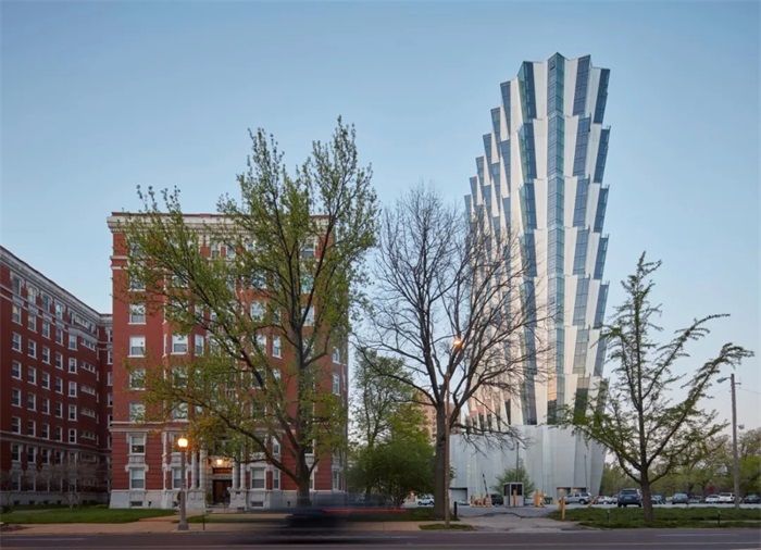 项目位于美国密苏里州的圣路易斯,是一栋俯瞰森林公园的住宅楼,也是Studio Gang在当地的第一个项目。塔楼高约115.8米,包含零售、停车、住宅公寓和各项基建设施。项目往东可望见著名的圣路易斯拱门。