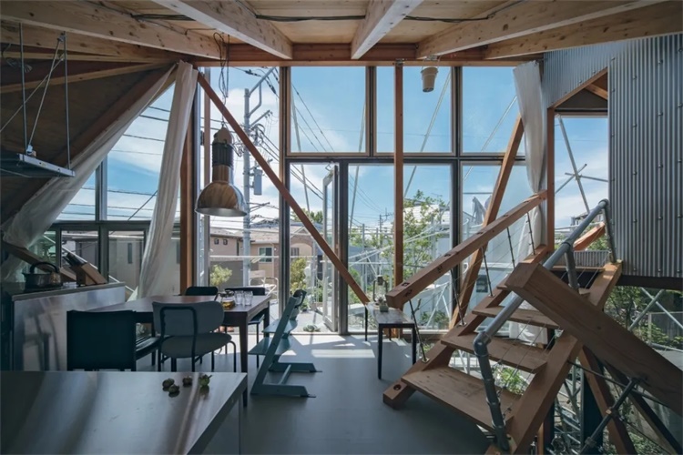 5个阳台,5个楼梯,家具,杂物,结构全裸露在外,就像大自然中自由生长的枝分裂一般,可利用自己的家做实验,在小面积住宅中创造无穷变化。