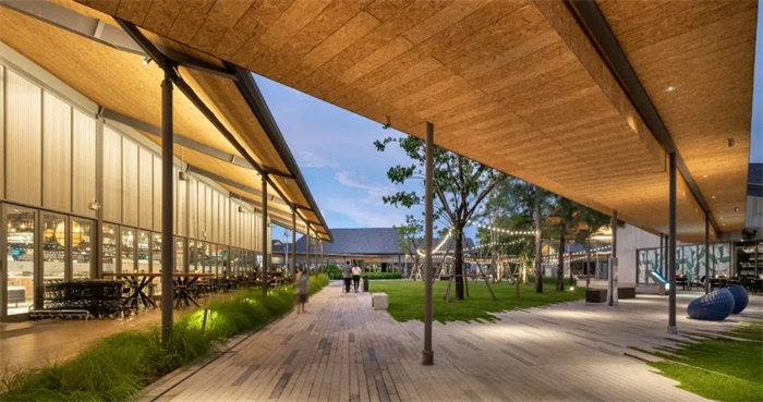 项目由五栋不同的建筑组成,每栋建筑面积约 10000 平方米,半户外的空间将场地内的景观与建筑有机地融为一体,旨在为普吉岛市民提供独特的购物、休闲与生活体验。建筑的微妙表现形式与周围的环境融合,为 Choeng Talay 村树立了新的城市形象和特色。