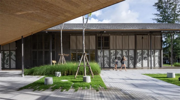 在成为多功能聚会空间的过程中,该设计结合中葡文化背景,重新诠释了沙波纹或波浪的自然形态,创造了一个独特的建筑。沙波纹屋顶以不同的角度倾斜,勾勒出庭院和露台的轮廓,吸引游客与进入景观之中,在城市生活方式与自然之间建立起新的联系。柱廊和立面上的比例与元素的微妙表达均源自普吉岛的中葡联排别墅,进一步表现了港口城市的历史和文化意义。