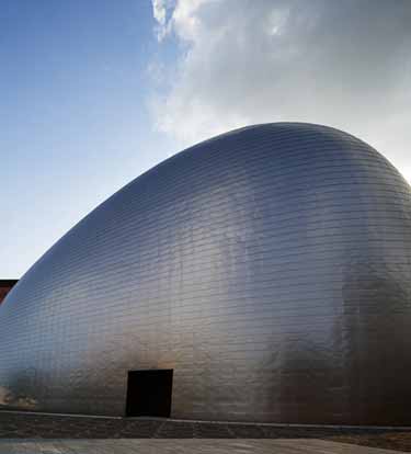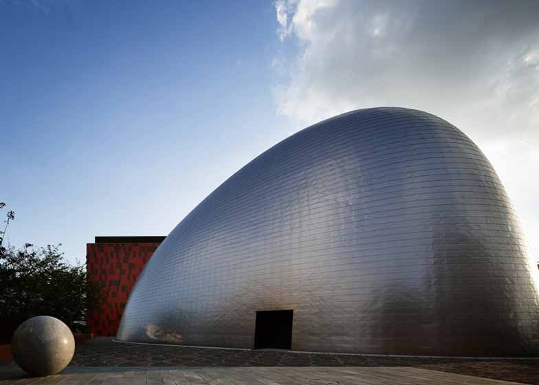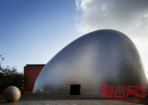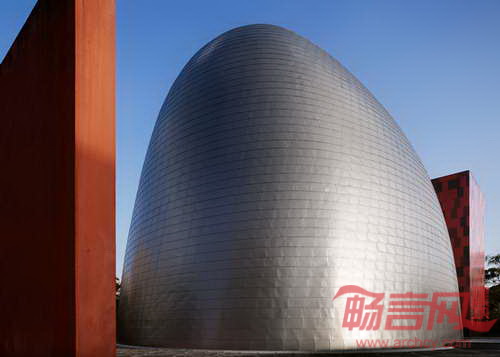 日本K/O设计工作室设计了位于川崎的洗足音大银色建筑。建筑具有球茎形状,位于一座方形红砖建筑一侧。自由形式建筑称为“银山”,容纳了新排练厅;一旁的“赤壁”建筑包含办公室、员工休息室和学生休息室。建筑师Kunihide Oshinomi表示,“自由形3D‘银山’和方形‘赤壁’是依照功能需求设计的,分别包含排练厅、办公室,位于校园交通枢纽点上。从视觉表现方面,两座建筑的颜色和形状产生了反差。”